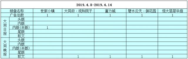 2019年第15周(4.8-4.14)大同樓市主流媒體監(jiān)測