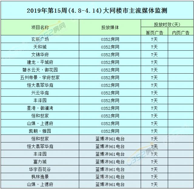 統(tǒng)計媒體:大同日報、大同晚報、0352房網(wǎng)、藍博沐961電臺