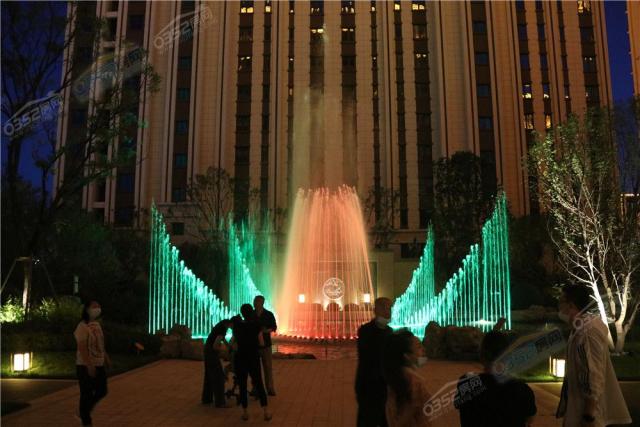 暖色的燈光映襯著園中景色,晚風與噴泉帶來陣陣涼意,府中視野開闊,庭間風景正好,別有一番滋味。