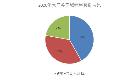 從銷售數據我們可以看出,2020年大同樓市銷量占比最大仍是御東區域,但市區銷量占比與御東接近,趨于持平。2020年市區新盤迭起,且價格普遍低于御東,不少習慣在市區居住的購房者,在較高性價比的吸引下紛紛出手購買,市區銷量在連續的低迷走勢當中逐步增長,甚至受部分新盤入市影響屢屢反超御東,大同商品房兩大銷售區域從“一家獨大”的狀態發展成為“你追我趕”的平衡態勢。而云岡區則漸入佳境,新盤輪番入市,得到不少棚戶區及礦務局購房者的青睞,在2020年樓市銷量當中占得一席之地。