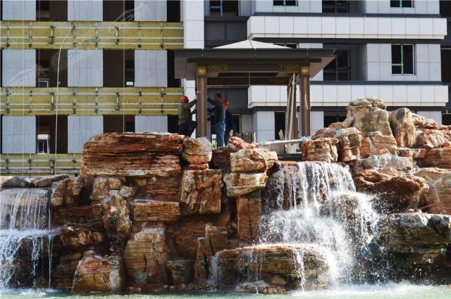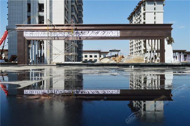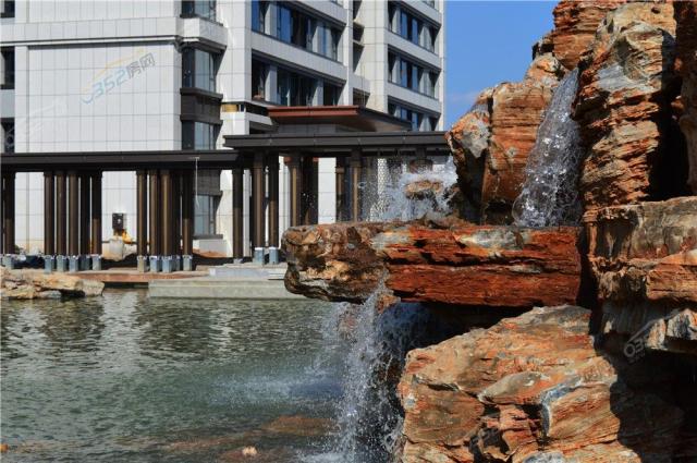 項目中心水系已初見模樣,廊亭、石柱、水域完美呈現,結合立體景觀已有震撼之感,與之連接的西側入口大平臺水系目前已完成鋪裝,金屬山水的襯托給原本石材冰冷的氣氛增添了暖意和中式氛圍。項目北側退臺式云紋水系更是采用繁復工藝走線收邊,滿足夏季有水長流的同時,又避開水系在冬季不美觀的尷尬,可謂用盡心思。跟隨東側主入口設置的水源頭看去,水流從石桌慢慢流至小徑,又充溢于近千平米的大水系之中,貫穿聯通,讓人神清氣爽。