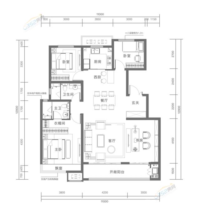 如某樓盤建面約133㎡及以上面積戶型均采用了三合一大橫廳設計,這在目前的大同樓市中屬實不多見,以建面約133㎡戶型為例: