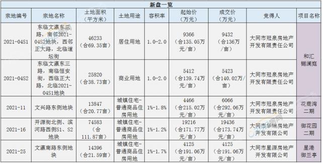 據0352房網數據顯示,2021年大同出讓住宅地塊約60余塊,其中大同本地房企拍地約50余塊(其中包含商業及居住用地性質地塊),外來房企卻只拍了不到10塊,由此可見2021年大同本地房企占土地份額較多,外來房企拿地略顯謹慎。