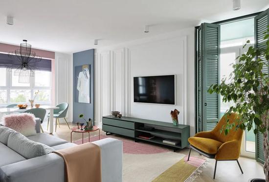 發(fā)現(xiàn)色彩鮮艷的家具和墻板的延續(xù)