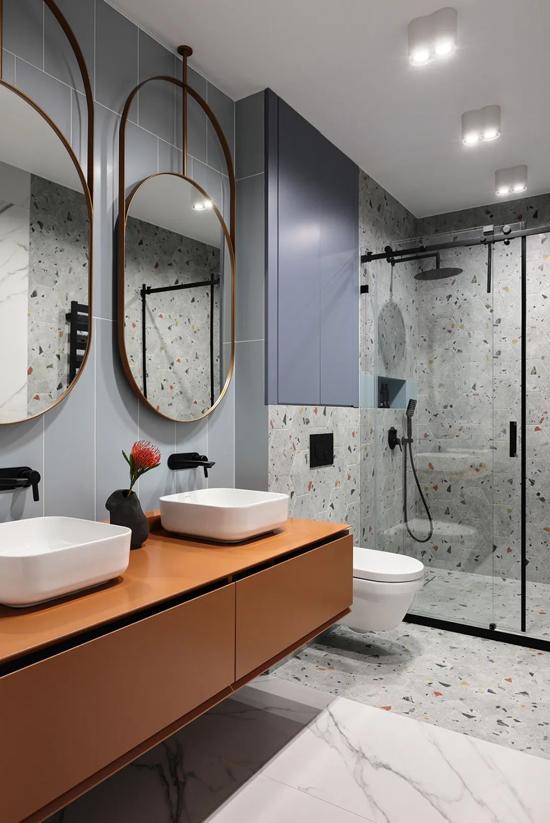 水磨石瓷磚在淋浴間的潮濕區(qū)域營造出色彩