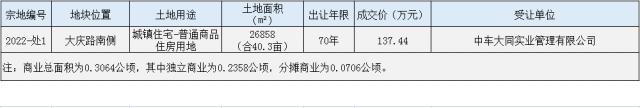 摘要:據相關網站公示,大同市平城區一宗居住用地成功出讓,總面積約40畝,詳情如下。