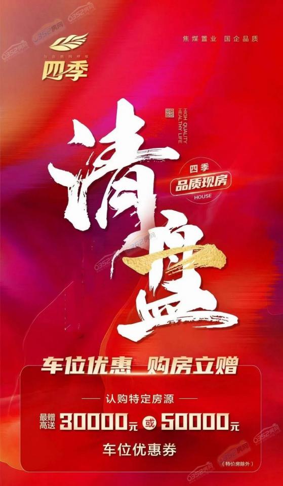 摘要:四季買房送車位優惠券,認購特定房源,最高贈送30000元或50000元車位優惠券,詳情可咨詢售樓部。