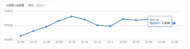 環(huán)比2022年5月份,大同2022年6月在售商品房均價每平米下降9元,房價基本持平;同比來看,2022年6月大同在售商品房均價7058元/㎡,2021年6月大同在售商品房均價為7014元/㎡,同比上漲0.6%。