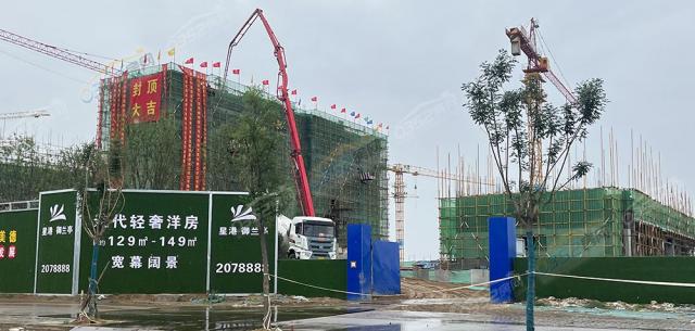 截止2022年7月22日,星港御蘭亭西側部分洋房喜迎主體封頂,其余樓棟在有序建設中。