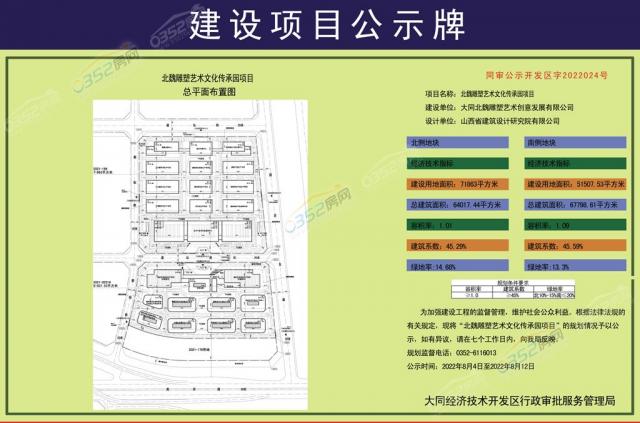 摘要:據(jù)相關網(wǎng)站公告,大同市經(jīng)開區(qū)將要新建北魏雕塑藝術文化傳承園,總面積約185畝,位于大同市實驗中學以東方向,詳情整理如下。