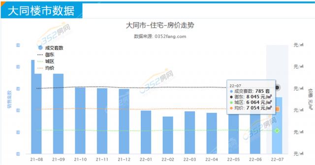 2021年7月大同樓市總成交套數1200套左右,總成交面積約15.11萬平方米,總成交額約11個億;2022年7月大同樓市總成交數據與去年同期相比下滑趨勢較為明顯。