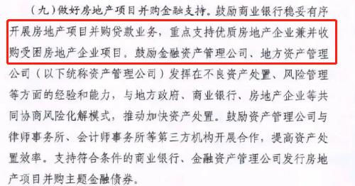 政策中提出,對市場主體的兼并購的鼓勵,重點支持優質房地產企業兼并收購受困房企的項目,還有鼓勵資管公司介入,鼓勵第三方專業機構開展合作等。