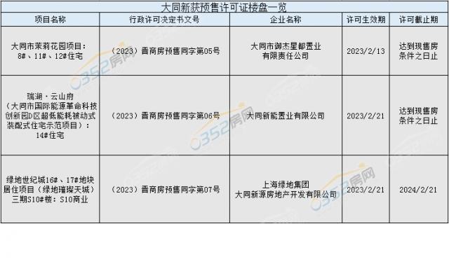 五證齊全!大同3個樓盤項目獲得預售許可證!