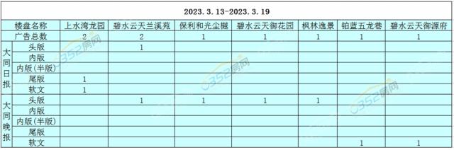 本周大同樓盤廣告投放排名