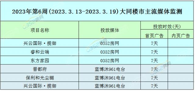 2023年第6周(3.13-3.19)大同樓市主流媒體監(jiān)測