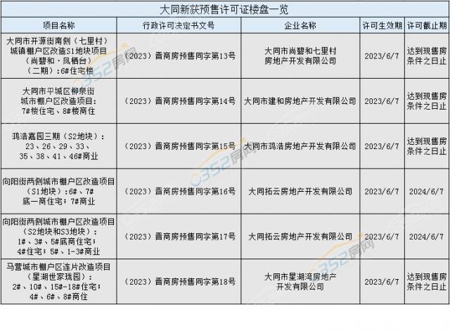 大同新獲預(yù)售許可證樓盤一覽