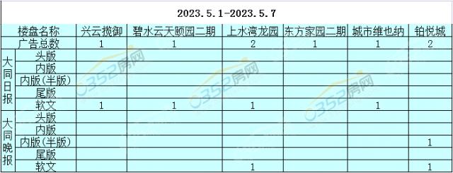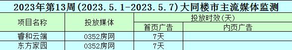 2023年第13周(5.1-5.7)大同樓市主流媒體監測