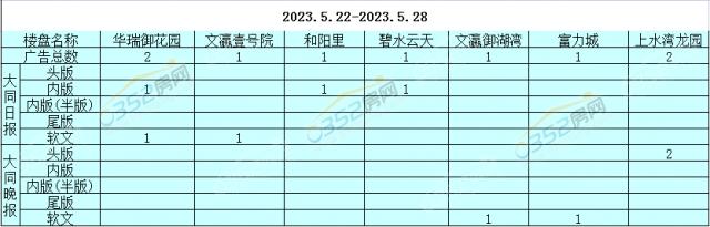 2023年5月22日至2023年5月28日,共有2個項目在0352房網投放廣告。