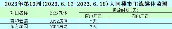 2023年第19周(2023.6.12-2023.6.18)大同樓市主流媒體監測