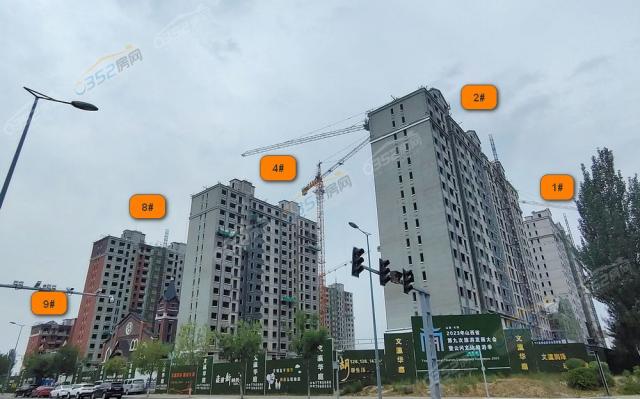 截止2023年7月4日,文瀛華庭各樓棟有序施工中,南側樓棟建設較快,6#、8#、9#等樓棟進行外立面建設,東側大門初現雛形,英倫風格顯現。