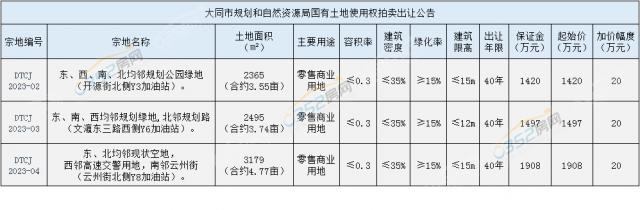 經大同市人民政府批準,大同市規劃和自然資源局決定以 拍賣出讓 方式 3(幅) 地塊的國有土地使用權。現將有關事項公告如下:
