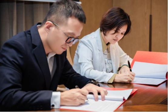 (左-文瀛壹號院物業經理郝亮先生 右-龍湖智創生活山西區域總經理吳紅紅女士)