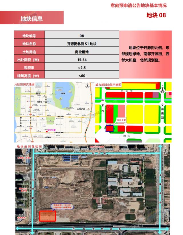 3、如有意向參與上述地塊競(jìng)買的,預(yù)申請(qǐng)人可于2023年9月13日17:00前向大同市規(guī)劃和自然資源局提交意向預(yù)申請(qǐng)。