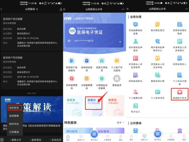 進(jìn)入山西醫(yī)保公眾號(hào)首頁(yè),點(diǎn)擊”我的醫(yī)保”,選擇”我要辦”,進(jìn)入”家庭賬戶共濟(jì)”模塊。