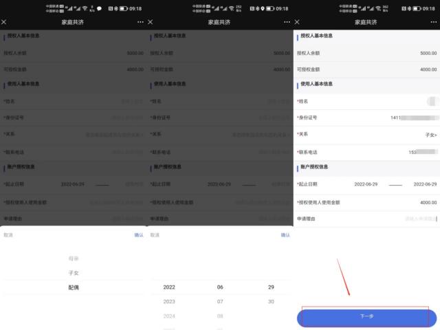 根據(jù)實(shí)際情況將所有信息進(jìn)行完善(注:家庭關(guān)系為父母親以及配偶只允許存在一條有效信息,子女關(guān)系信息無上限;可授權(quán)金額為授權(quán)人余額超出1000的部分),確認(rèn)無誤后點(diǎn)擊下一步。