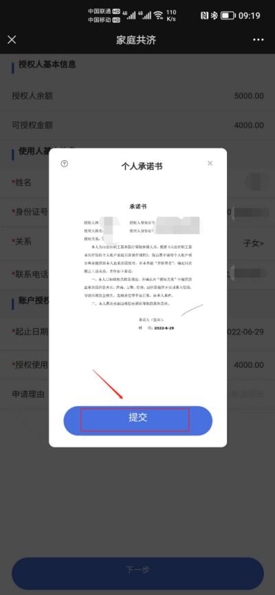 簽字完成后,系統(tǒng)自動(dòng)生成個(gè)人承諾書,請(qǐng)仔細(xì)閱讀個(gè)人承諾書,確認(rèn)沒有問題后點(diǎn)擊”提交”完成家庭成員添加。