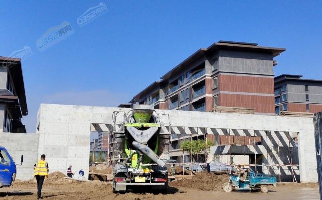 御錦文瀛,各樓棟外立面建設基本完成,進行東側大門施工。
