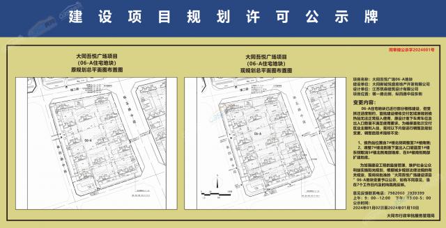 大同吾悅廣場項目(06-A住宅地塊)建設項目規劃許可公示。