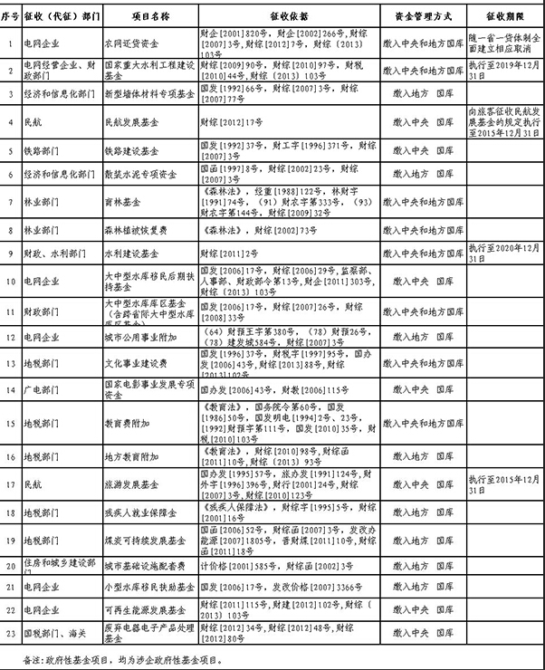 山西省財政廳、物價局《關于進一步完善我省行政事業性收費(政府性基金)項目目錄公開制度的通知》(晉財綜[2014]50號)和山西省財政廳《關于公布行政事業性收費(政府性基金)項目目錄清單的說明》要求,依據法律、行政法規的有關規定,按照現行的基金管理制度設立的基金項目,向社會公開。基金項目目錄清單詳見市政府官方網站。