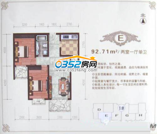 與D戶型相比,E戶型更科學使用,空間富于變化,視廊通透,品味與格調自然而生。主臥