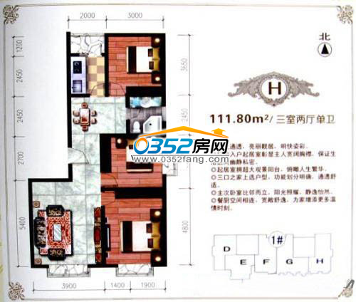 H戶型明快姿彩,軒敞入戶,起居室彰顯主人寬闊胸襟,保證了生活區間幽靜私密。主次臥