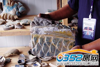 記者9月3日從代王府修復項目指揮部看到,放置于地上的一尊殘高40多厘米的灰陶質(zhì)地的正脊吻獸,體態(tài)較大,保存尚算完好。據(jù)文物專家講,這是一種裝飾性建筑構件,一般安放于官式建筑殿宇屋頂上的正脊或垂脊上,其形狀之大小和數(shù)目之多少,代表殿宇等級之高低。一個帶龍鱗的脊獸殘件,龍鱗線條有力、刻畫到位、釉色名貴、圖案精美。