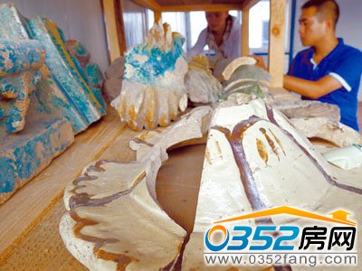 記者在代王府修復項目指揮部辦公室看到,色澤艷麗的琉璃構件分外引人注目。據介紹,在出土的構件中,瓦當、滴水、筒瓦等就有許多種類,而且大量構件上有精美的龍紋圖案。其中一個脊獸殘件依然色澤艷麗,精美龍鱗線條有力、刻畫到位,從這一殘件可以看出,其原件應當足有數米之長。在出土的琉璃構件中,極其名貴的“孔雀藍”就占到了75%。有關文物專家稱,出土的琉璃構件中展現出的碩大體積、名貴釉色、精美圖案、過硬的燒造技藝以及只有皇室才能使用的龍紋圖案,從一個角度講訴了當年代王府的規模、規格以及奢華與富麗。