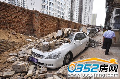 據群眾介紹,昨晨7時40分,隨著“轟隆”一聲巨響,南郊富民路37號樓下一片狼藉,5輛汽車瞬間被倒塌的圍墻砸了個面目全非。