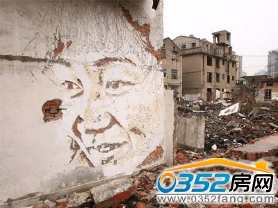 外國墻繪藝術家拆遷現場繪制巨幅肖像畫引圍觀