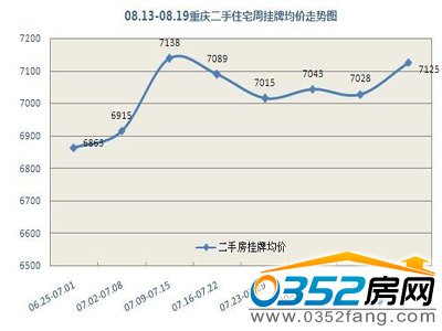 根據(jù)重慶二手住宅周掛牌均價(jià)走勢圖顯示,近兩個(gè)月的樓市跡象表明,重慶二手房房價(jià)正處于一個(gè)受市場和政策雙向控制的徘徊期,周期價(jià)格均無大的波動(dòng)。重慶主城二手住宅掛牌均價(jià)為7125元/平米,與前一周7028元/平米均價(jià)相比,環(huán)比上漲97元/平米,漲幅為1.38%。繼8月第二周重慶二手房掛牌均價(jià)下跌后,8月第三周迎來上漲。據(jù)搜房網(wǎng)二手房監(jiān)控中心分析師分析,在房地產(chǎn)市場成交量持續(xù)反彈后,價(jià)格開始上漲,漲幅的進(jìn)一步擴(kuò)大,樓市復(fù)蘇跡象明顯,若調(diào)控沒有出現(xiàn)大的變化,未來幾個(gè)月有望維持這一趨勢,但會(huì)相對(duì)理性,“金九銀十”現(xiàn)象或不再突出。