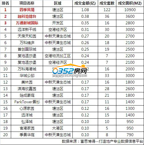 近日,富思博得發布了4月天津住宅(濱海)成交金額排行(前20)。