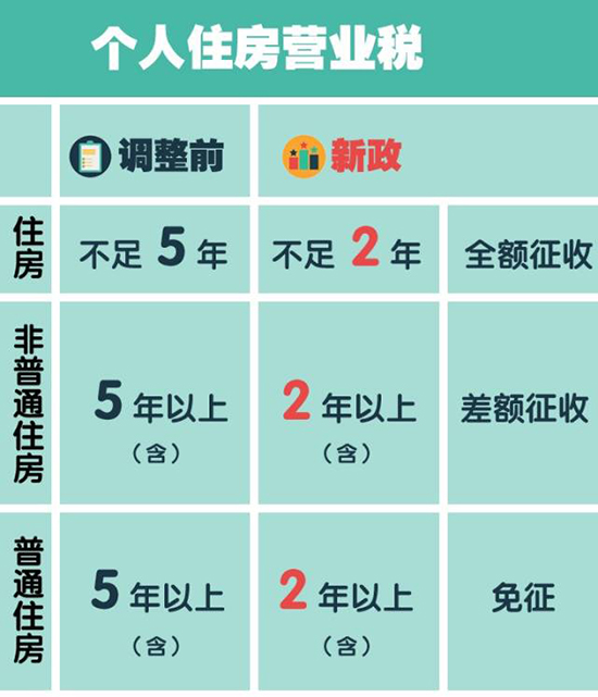 買房屋的價款后的差額征收營業稅;個人將購買2年以上(含2年)的普通住房對外銷售的,免征營業稅。新政從今天開始執行。