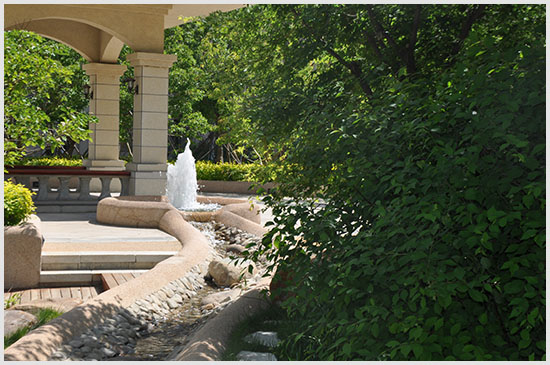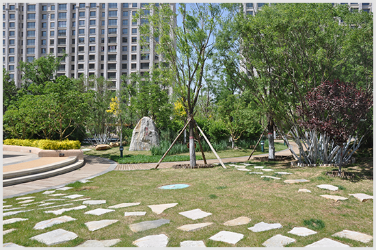 雍錦臺在園林景觀的表達上利用當地的資源,結合地形塑造出合理的廣場布局,植物的搭配錯落有致,加之靈動的水景,景觀綠化中的亭子、椅子亦能為小區鄰里的交流活動提供舒適的平臺,新和諧的理念,更突顯小區的微觀環境,更具生態性與親和力。