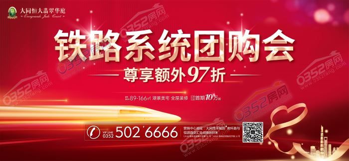 3、12月12日,恒大翡翠華庭“雙十二”鐵路系統(tǒng)團(tuán)購(gòu)會(huì),尊享額外97折優(yōu)惠,分期付款首付10萬起。