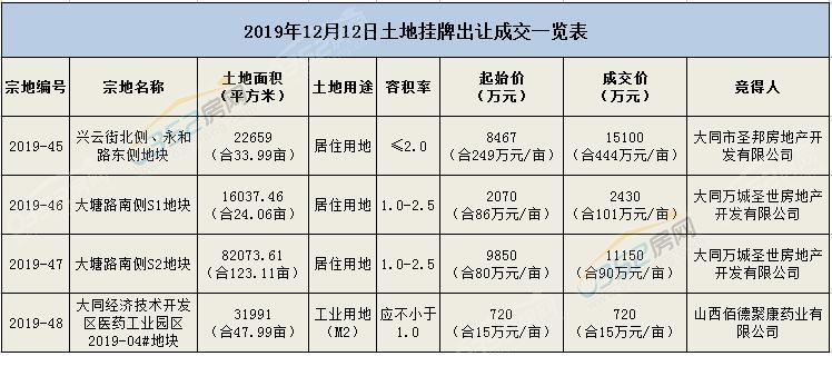 1、12月12日,大同市規(guī)劃與自然資源局公開出讓四宗地塊,其中3宗居住用地,1宗工業(yè)用地,其中興云街北側(cè)、永和路東側(cè)地塊最高以444萬/畝的價(jià)格成交,詳細(xì)情況一起來了解一下吧!