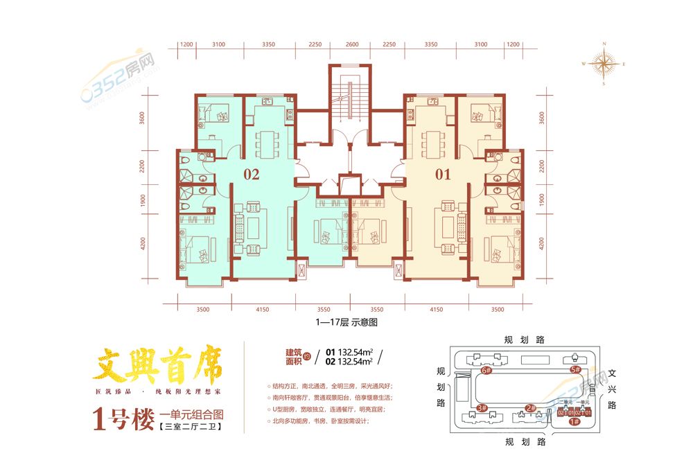 2、文興首席戶型圖出爐,戶型區間93-173㎡。