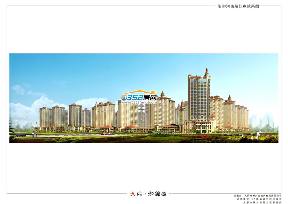 “御錦源” 位于御河西路‘一中新址’旁,本項目規劃建筑面積約96萬平方米,總投資約30億人民幣,擬建29棟高層,目前是我市城區內規模最大的集住宅、商業為一體的組團社區。本項目地處御河西路以東,東鄰皇城水系御河,與濱河生態園相伴;西邊與大同一中新址相鄰;南靠新建的南三環御河斜拉大橋,直通御東新區、大同二中、京大、大運高速;北與得大高速相通。項目周邊有云岡建國賓館、晨光國際大酒店等高檔五星級酒店和商務中心,社區內部配套幼兒園、小學、高檔會所等,為了讓產品做到沒有缺陷,博興地產秉承踏實做事、做好產品的原則,從建筑材料的選擇到資源的整合,再到工藝的完善,力求做到精益求精,以此來打造企業的品牌、城市的品牌。