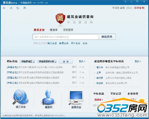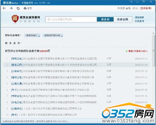 建設通為方便廣大建筑業用戶,特增加了“招標”查詢這項功能,可查詢全國各地的最新招標信息,信息全都來自于政府建設主管單位,真實可靠,而且更新及時,查詢一目了然!建設通下載地址:pc.cbi360.com 客服熱線:400-600-3067