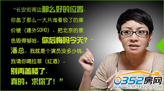 “求求你了,潘總,別再蓋了,愛愛北京吧!!我就是個演員沒多少錢,我請你喝拉菲,別再蓋樓了。真的,求求你了!”這就是最近網友們力薦給春晚的小品。話說趙本山的老搭檔宋丹丹和地產大腕潘石屹在微博上就蓋樓的事兒你來我往逗悶子,不甘寂寞的任志強也加入戰團……圍觀群眾大呼過癮:“真應該讓‘潘丹丹’上春晚!”#p#副標題#e#