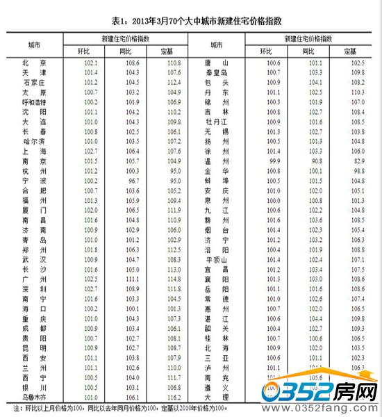 (一)與上月相比,70個大中城市中,價格下降的城市有3個,持平的城市有1個,上漲的城市有66個。環比價格上漲的城市中,漲幅最高為3.1%。